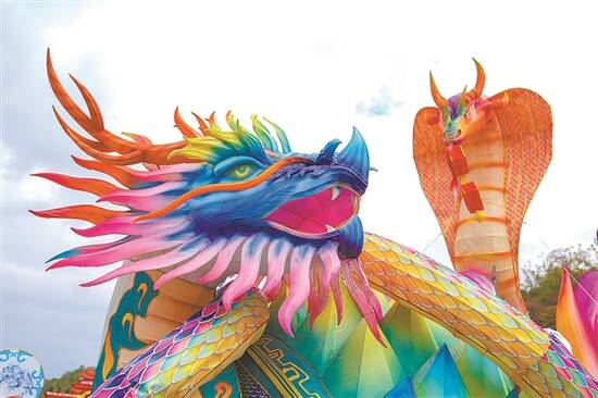 正佳帽峰湾千灯会的大型花灯 羊城晚报记者 梁喻 摄 |