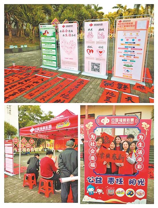 记者从云浮市福彩中心获悉,2025年农历春节来临之际,为营造喜庆气氛,弘扬福利彩票“公益、慈善、健康、快乐、创新”的文化理念,彰显福彩事业“取之于民、用之于民、服务社会”初心使命,1月19日上午,由云浮市福利彩票发行中心主办的“福彩春联送万家”公益宣传活动在云浮市文化馆门前广场开展。 活动现场,云浮市云城区西雅房书画社书法家挥毫泼墨,为市民朋友写下一副副寓意吉祥的春联和“福”字。这些春联不仅展现了书法艺术的魅力,还意在传承中华优秀传统文化,传递新春美好祝愿。市民朋友纷纷前来挑选喜欢的春联,他们拿着手写的春联,脸上洋溢着喜悦的笑容,带到活动会场中有阳光沐浴温暖的地上晾晒着,整个氛围喜意浓浓。此外,活动会场还设置有公益展架、福彩“网红”打卡点、福彩刮刮乐户外销售点,供大家观看了解和娱乐休闲。 本次“福彩春联送万家”公益宣传活动,以墨香传递温暖,以交流互动拉近彼此之间感情,为广大市民朋友创造了一个了解福彩文化、认识公益福彩的机会,是云浮福彩践行公益属性的一项重要举措。云浮福彩将以此次活动为契机,持续开展更多形式多样、内容丰富的公益宣传活动,不断提升中国福利彩票的公益品牌形象和品牌影响力,也让更多群众对中国福利彩票的认同感、幸福感和安全感更上一层台阶具有重要意义。 (文/黄颖琳 凌超杰 图/云浮福彩)