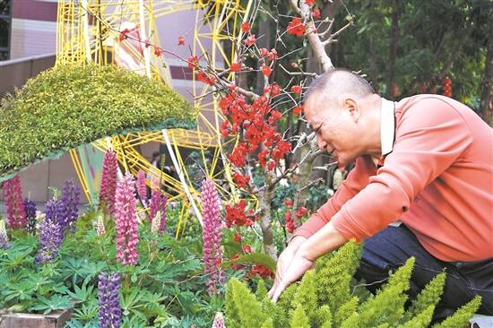 文/图 羊城晚报记者 马思泳 始于1957年农历新春的广州文化公园“迎春花会”至今已有68年历史,是广州市民新春佳节免费游园赏花的好去处。2025年广州文化公园“迎春花会”展出精品花卉逾5万盆,展出各式应节时花56种。春节期间,“迎春花会”能保持最佳展出状态,背后离不开“护花使者”的呵护,从业33年的广州文化公园花艺师李兆祥就是其中一位。 今年52岁的李兆祥于1992年入职广州文化公园,多年来,他春节期间坚守岗位,确保“迎春花会”的花卉能以最佳状态迎客。 广州文化公园“迎春花会”是广州老牌的春节活动,吸引不少市民游客阖家观赏。“春节期间,我们难免会因为工作牺牲了陪伴家人的时间。”春节假期,李兆祥除了值班在岗,还利用空余时间特意到公园巡逻,观察花卉状态,“要亲自看过才放心,如果发现有花卉需要扶正、修剪,便要马上处理,力求将花卉最靓的一面呈现给市民游客。” 记者了解到,1月29日(正月初一),广州文化公园客流量约有7.5万人次,预计1月30日至2月4日平均每天接待市民游客4万-5万人次。李兆祥认为,客流量增多,更要精心管理花卉。“我们早上7点多到岗,赶在市民游客进园赏花的高峰时段调整花卉。11时,在市民游客午餐用餐时段,组织进行浇水等工作。”李兆祥说。 组织管理公园花卉景组是一门既细心又繁琐的学问。“为保证展出花卉最佳生长状态,我们每天关注天气情况,适时调整花卉养护方案。如天气晴朗暖和,会多浇一些水;如遇上降温、湿冷,则要少浇水,甚至不浇水。”李兆祥说,打理花卉需要耐心,但看到市民游客走进花卉景组拍照留念,会感到十分有成就感。 “一花一草,一树一木,都有情感。”李兆祥的父辈是芳村花农,家族三代人早已和花卉结下缘分,这也让李兆祥在年轻时选择了从事花卉养护的相关职业。 从工勤人员到花艺师,李兆祥打理花卉得心应手,还传承了广州文化公园老一辈花艺师的扎作技艺。“我刚入职文化公园时,除了要参与花卉养护,还需要学习插花、扎作等技艺,公园老一辈师傅的传统技艺在‘迎春花会’仍有延续。”李兆祥说,年桔扎作技艺是广州文化公园“迎春花会”的特色,设计框架、扎作年桔等工序,考验着师傅们的手艺,如扎作成品要满足年桔的生长需求和美观性。 李兆祥介绍,本次“迎春花会”展出了年桔版“小蛮腰”广州塔、香港中银大厦、澳门大三巴牌坊等粤港澳大湾区城市地标,其中广州塔“小蛮腰”的框架由去年“羊城菊会”曾使用的花卉框架改造而来,既实用又节约。 从业多年,李兆祥对挑选年桔练就了一双火眼金睛。每年中秋节后,李兆祥就着手准备次年“迎春花会”必不可少的主角——年桔。“我们会到佛山顺德的种植基地挑选年桔。中秋后的年桔树果实小,呈绿色,还未成熟,但我能凭肉眼判断一株年桔来年的长势。”李兆祥说,大株年桔树一般宽3米,如果其果实均匀分布在各枝条,其来年观赏性较高,“文化公园的年桔树一般在春节前2个月进行‘排果’,但我们会保留年桔的自然生长形态,呈现其生态美感。” 此外,在“迎春花会”举办前一两个月,李兆祥还和同事走遍珠三角地区的花卉种植基地,挑选桃花、应节时花等,将高品质的年花带到文化公园“迎春花会”供市民游客观赏。