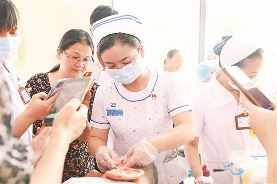 7月6日“大医精诚——中医名家走基层”活动云浮罗定站,全国中医护理骨干人才、南方医科大学中西医结合医院黄波护士长在义诊现场带教中医技术 |