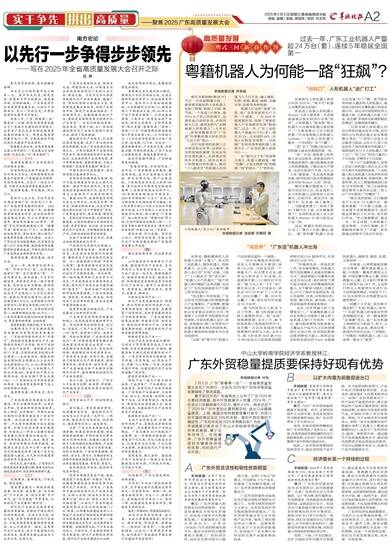 羊城晚报记者 付怡 2月5日,广东“新春第一会”——全省高质量发展大会在广州举行。大会为2025年广东经济高质量发展描绘了奋进蓝图。 春节前召开的广东省两会上公布了广东2024年主要
