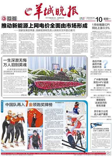 中共广东省委主管、主办 羊城晚报社出版 1957年10月1日创刊 2025年2月10日 乙巳年正月十三 星期一 20℃ 6℃ 责编/孙焰 美编/刘栩