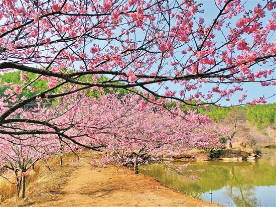 羊城晚报讯 记者欧阳志强,通讯员肖桃容、李淑坚摄影报道:春风吹处处暖,樱花盛放满枝繁。近日,位于韶关乐昌市坪石镇龙珠村的樱花基地樱花竞相绽放,春天的气息扑面而来,吸引不少游客前来拍照观赏。 走进樱花小道,一树树、一簇簇粉色的樱花在春日的暖阳里随风摇曳,星星点点的粉色蔓延交织,仿佛给黛色的山峦披上一件粉色的外衣,美不胜收。 一阵微风吹过,一片片花瓣迎风飘落,花瓣落在路上,形成了一条条用花瓣铺成的小道,游客漫步其中,仿佛进入了美丽的童话世界。樱花挺立枝头,绽放灿烂笑颜,以其展姿与展态,笑迎八方来客。 坪石镇樱花基地负责人表示:“目前,龙珠村的樱花已经进入盛放期,是观赏樱花的最好时机。花期预计持续到3月下旬,欢迎广大群众来坪石踏青赏樱,感受春日的浪漫气息。”