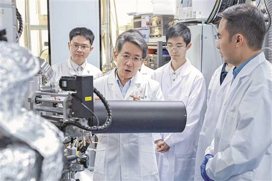薛其坤(左二)与研发团队在实验室进行高温超导研究 受访者供图 |