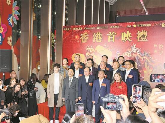 羊城晚报讯 记者王漫琪、通讯员梁源摄影报道:2月18日晚,千呼万唤的《哪吒之魔童闹海》(以下简称《哪吒2》)在香港铜锣湾翡翠明珠广场举行盛大的首映礼,吸引知名香港艺人黄百鸣、任达华和英皇集团主席杨受成等众多文化艺术界嘉宾及市民到场观礼(见上图)。2月22日,该片将在港澳影院全面上映。 就在18日当天傍晚,《哪吒2》超过《头脑特工队2》,成功登顶全球动画电影票房榜。 香港特区政府文化体育及旅游局局长罗淑佩在首映礼上致辞时表示,影片在港上映意义非凡,将为香港电影树立良好榜样。她强调,特区政府将出台相关政策,通过电影弘扬中华优秀传统文化,同时鼓励本地导演发挥创意,让香港及海外观众更深入了解中国文化,希望香港电影业能重振辉煌。 影片联合发行方之一东方影业主席黄百鸣谈道,《哪吒2》成功将中国文化带向世界,让全球观众见证中国动画的崛起。他深感自豪,并期待香港地区观众一同感受中国动画的巅峰时刻。他认为,影片所传递的“我命由我不由天”“创造未来”的精神,正契合当代年轻人的心态,相信定能在香港引起共鸣。 电影的热度席卷香港,吸引大批影迷热情支持。香港市民高松杰接受羊城晚报记者采访时表示,作为中国人,能在香港的大银幕上看到《哪吒2》,让他备感自豪。他还计划通过个人视频账号分享观后感,并呼吁更多年轻人走进影院,感受祖国日益强大的文化魅力。 一位专程从深圳赶来的罗先生向记者透露,自己此前已在深圳四刷《哪吒2》,因香港版通常会进行本土化处理,前来五刷,期待亲身体验“港味”版的“吒儿闹海”。