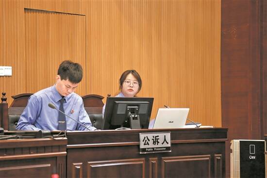 公诉席上,何蔚检察官(右)发表公诉意见 |