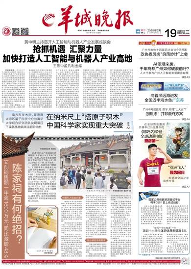 中共广东省委主管、主办 羊城晚报社出版 1957年10月1日创刊 2025年2月19日 乙巳年正月廿二 星期三 22℃ 14℃ 责编/袁婧 美编