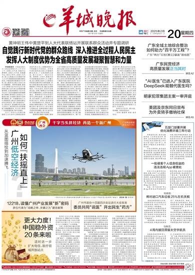 中共广东省委主管、主办 羊城晚报社出版 1957年10月1日创刊 2025年2月20日 乙巳年正月廿三 星期四 24℃ 15℃ 责编/袁婧 美编/刘栩 校对/