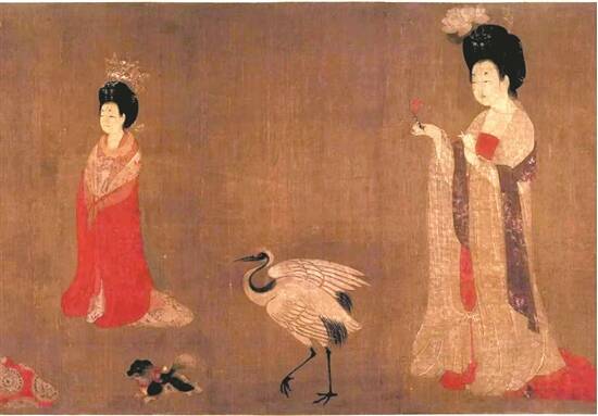 唐·周昉《簪花仕女图》(局部) 辽宁省博物馆藏 |