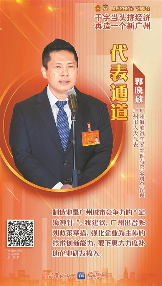 文/羊城晚报记者 冷霜 柳卓楠 图/羊城晚报记者 梁喻 守护好广州的“母亲河”流溪河,预算“三审”守好人民钱袋子,让新质生产力赋能广州制造业高质量发展,推动粤港澳大湾区互联互通……2月22日,广州市十六届人大五次会议举行第三场“代表通道”,来自民营企业、制造业、街道社区等领域的多位人大代表走上通道,分享履职故事,回应民生关切。 守护好广州的“母亲河” 全长157公里的流溪河被称为广州的“母亲河”,流域面积接近2300平方公里,支流纵横交错。广州市人大代表、中节能铁汉环保集团有限公司副总经理许桂贤始终密切关注流溪河周边的生态环境。 过去两年来,许桂贤和其他代表调研农污设施、入户收集管网运行情况,发现农污设施建设管理存在水质监测要求落实不到位等普遍性问题3项、设施出水不畅等具体问题9项。通过市人大城乡建设环境资源委与水务部门积极沟通协同,督促相关部门进行全面排查与立行立改。 2024年流溪河流域国考、省考断面优良水质占比达到100%,全部达到Ⅱ类及以上。“绿水青山,关系着生态环境的质量,承载着人民群众对美好生活的向往,守护生态底色是人大代表义不容辞的责任。”许桂贤说。 预算“三审”守好人民钱袋子 实行了10余年的预算“三审”制是广州人大工作的一个亮点品牌。作为连任四届的广州市人大代表,广州市华安达实业有限公司董事长丘育华对此感触颇深。他表示,预算“三审”体现了全过程人民民主的要求。在大会前开展预先审查,是面向市政府和重点部门的一项专题审查活动,吸引了三分之二以上的市人大代表参加,发挥了代表的主体作用。 此外,预算“三审”也促进了人大和政府的良性互动。通过预算预先审查、初步审查,以及意见反馈等环节,人大与政府间的一系列反复沟通和多轮互动,提高了预算管理水平。通过预算“三审”,把人大监督与财政监督、审计监督以及社会监督有效协同起来,从而构筑起了预算全方位立体监督体系。丘育华表示,作为预算委委员,守好人民“钱袋子”,盯紧政府“账本子”,他责无旁贷。 制造业是广州城市竞争力的“定海神针” 扎根制造业20余载,广州市人大代表、广州海缝汽车零部件有限公司总经理郭晓欣十分关注制造业高质量发展。他认为,制造业是广州城市竞争力的“定海神针”。 过去一年,郭晓欣化身“调研达人”,走访江苏、浙江等地的制造业企业,在广泛调研的基础上,积极与广州有关部门进行头脑风暴,从对接市场、技术、人才、资本、政策资源等方面出谋划策,为企业科技创新、转型升级提出许多金点子。 郭晓欣建议,广州要为制造业企业加油打气,出台系列政策举措,强化企业为主体的技术创新能力。此外,广州要继续大力支持、指导制造业企业引进人才团队,为校企合作搭建平台,大力培养专业技术工人,让企业有更多能工巧匠。 发挥南沙地理优势,打造“湾区交通中心” “推动大湾区互联互通再提速,需双管齐下。”广州市人大代表、广东省交通规划设计研究院集团股份有限公司总经理助理万欢表示,交通新技术的应用与南沙的区位优势,是互联互通的关键着力点,广州应借此机会发展新交通业态,形成产业新质生产力。 万欢提到,要充分发挥南沙“湾区几何中心”的地理优势,打造“湾区交通中心”。陆运上,高规格建设南沙站,加密南沙路网并引入智能管理;水运中,应用先进港口技术提升南沙港效率;航运方面,加强机场协作,建设通用航空机场,开辟低空航路。万欢相信,此举将助力广州交通实现跨越式发展,也为粤港澳大湾区乃至全球的交通互联互通贡献广州力量。 “代表联络站”是践行全过程人民民主的生动实践 “代表联络站是人大代表联系人民群众的民意窗、连心桥,是践行全过程人民民主的鲜活载体。”广州市人大代表、广州市创新社区治理发展研究院管委会主任张茜说。 张茜介绍,自己在代表联络站接待群众时,了解到装配式垃圾投放点存在安全隐患和遮雨棚过小等问题。随后,她走访多个区街深入调研,形成改善建议。回访时,保洁人员的认可让她深感履职的价值。“多走进社区,履职就会有内容;把群众的事儿放心上,履职就会有担当。相信,一个又一个社区的小变化,定能汇成广州城市发展的大能量。”张茜说。 “人大代表榕议亭”实现倾听民意零距离 在番禺区大龙街旧水坑森林公园,有一棵枝繁叶茂的大榕树,它是村民夏日乘凉、冬日闲谈的好去处,也是人大代表联系群众的重要场所,被称为“人大代表榕议亭”。 广州市人大代表、广州地铁集团高级客车司机、团委副书记李方方曾多次在这里察民情、汇民智、解民忧。“在榕树下建立这个没有围墙的代表联络站,用唠家常的方式深入到群众中去,能够直接听到民众的心声,也能第一时间推动解决。”李方方说,通过“人大代表榕议亭”这一平台,人大代表深入群众,切实解决民生问题,使群众的获得感、幸福感和安全感不断增强。
