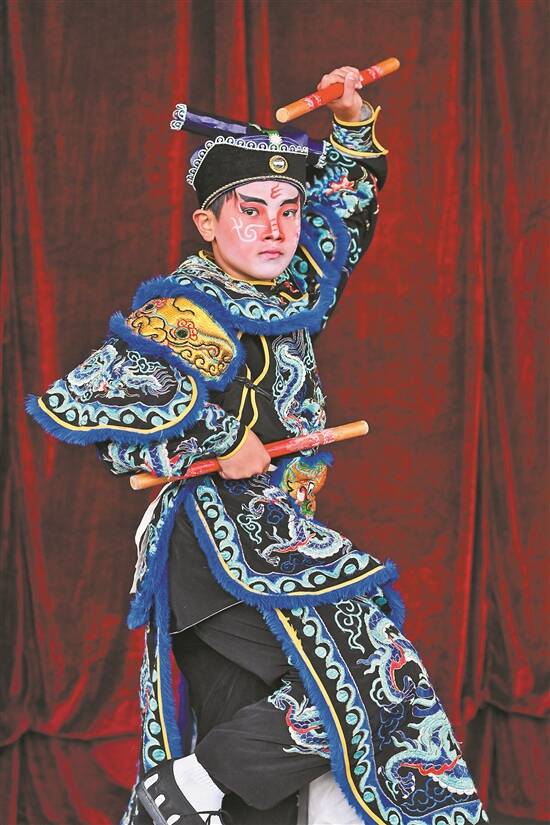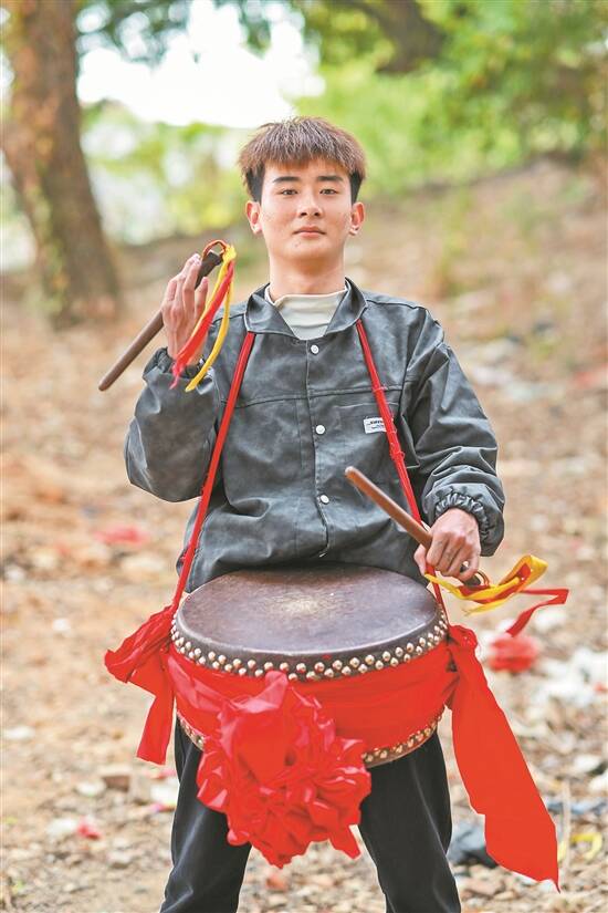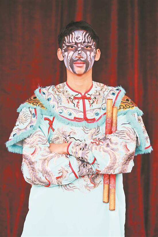 辛宰榜刚大学毕业,饰演“霹雳火秦明”,今年24岁,学习英歌13年了,觉得英歌舞能展现出威武雄壮和凶猛气势,还能锻炼身体,从而产生热爱 |