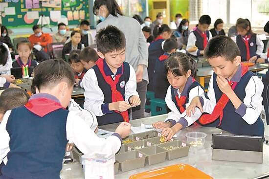 广州市越秀区旧部前小学学生在完成科技类课程 校方供图 |