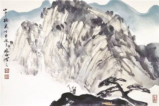 山中听泉(国画) 李晓白