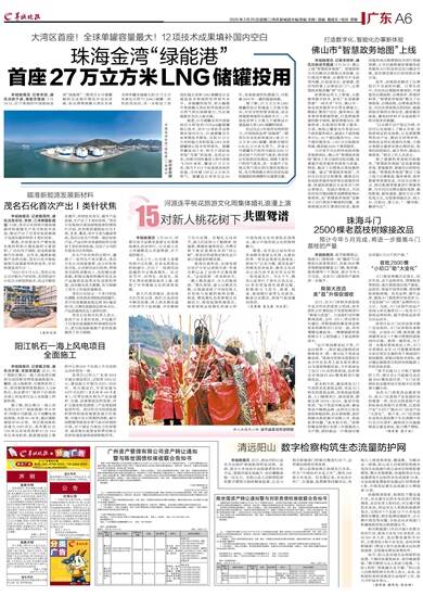 羊城晚报讯 记者李旭,通讯员姚于涵、保数芬报道:2月24日,位于珠海的中国海油金湾“绿能港”二期项目D号储罐顺利完成预冷填充并成功进液,标志着粤港澳大湾区首座全球单罐容量最大的27万立方米液