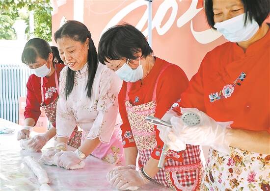 文/图 羊城晚报记者 文聪 通讯员 刘苏东 钟雨翘 3月2日,农历二月初三,一年一度的东莞市大朗镇石厦村“娘母会”暨敬老节如期举行。这一天,对于石厦村民来说,是一个特殊而温馨的日子,出嫁的女儿们携夫带子回到娘家,与亲人团聚,共同品尝妈妈亲手制作的濑粉,感受血脉亲情的延续。村里也会在这一天宴请60岁以上的长者,弘扬尊老敬老传统美德。 当天下午4点,石厦村文化广场上响起了欢快的锣鼓声,精彩的舞麒麟、醒狮活动拉开了活动序幕。在喜庆堂门口,已是一片忙碌。数十名巧手阿姨分工明确,谈笑间忙得不亦乐乎。只见她们熟练地将米浆倒入特制布袋,轻轻挤压,细长的濑粉丝条缓缓滑落热水中,翻滚跳跃。片刻之后,一盘盘晶莹剔透的濑粉,逐一呈现眼前。经过几个小时的奋战,她们为晚宴准备好了1000多斤濑粉。 随着夜幕降临,喜庆堂内灯火通明,晚宴正式开始。600多位六旬以上的老人欢聚一堂,他们品尝着美味的濑粉和其他佳肴,享受着这份难得的团聚时光,整个晚宴充满了欢声笑语。 据了解,石厦村的“娘母会”已经传承了上百年。每年农历二月初三,出嫁的女儿们会带着家人回到娘家,与亲人共赴一场盛大的团圆盛宴。“娘母会”以濑粉为主食,象征着亲情的绵延与家族的传承。出嫁的女儿们与母亲、兄弟姐妹及亲朋好友围坐一堂,品尝着娘家精心准备的濑粉,畅谈家常,共享天伦之乐。