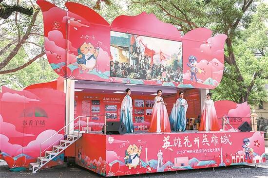羊城晚报讯 记者马思泳、通讯员荔宣报道:3月19日,“英雄花开英雄城”2025广州传承弘扬红色文化大篷车巡展荔湾区专场活动在沙面岛西广场举行,该活动旗帜也正式交接至荔湾区。本次活动特别设置了“英雄故事会”环节,博物馆讲解员、学生、红色宣讲员讲述英雄事、身边事。 广东革命历史博物馆的讲解员讲述了革命先烈张云峰在广州壮烈牺牲的感人故事;中共三大会址纪念馆讲解员以革命先驱瞿秋白翻译《国际歌》为故事切入点,将这首红色经典歌曲跨越百年的激荡岁月、震撼人心的英雄故事带到市民游客身边。 沙面小学的同学们带来了《穿越时空的对话》,通过深情朗诵,缅怀先烈,铭记英雄精神。 “我们社区民警在日常工作中会遇到许多矛盾纠纷,我希望以工作中的小切口讲述基层故事,讲述新时代公安的工作内容。”在宣传环节中,荔湾区公安分局多宝派出所副所长、永庆坊社区民警谢伟东结合工作实际,分享了他作为基层工作者,如何为市民旅游安全保驾护航,服务永庆坊片区的故事。 来自荔湾区人民政府冲口街道办事处的红色宣讲员魏权石介绍了坑口村“生菜会”民俗活动,展示了荔湾独特的地域文化魅力。魏权石说,希望通过宣讲,能让市民游客了解荔湾芳村片区的红色文化基因。 围绕“沙基惨案”“广三铁路总工会成立”等重要历史事件,本次活动在沙面西广场特别设置了以“红棉广州·荔湾行——咱们工人有力量”为主题的特色展览。 为纪念“沙基惨案”发生100周年,今年2月,沙面设立了广州市首个街道国防教育中心,本次特色展览与沙面国防教育中心联动举行。