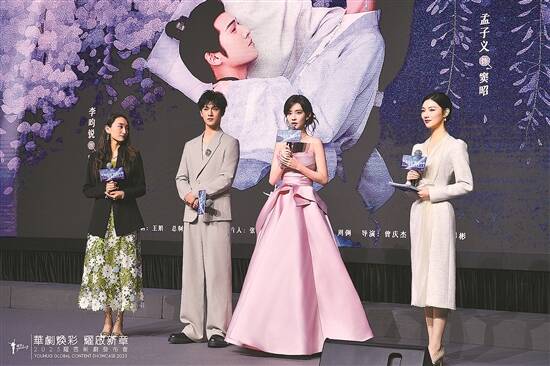 《九重紫》制片人张莹颖,主演李昀锐、孟子义(左1至左3) |