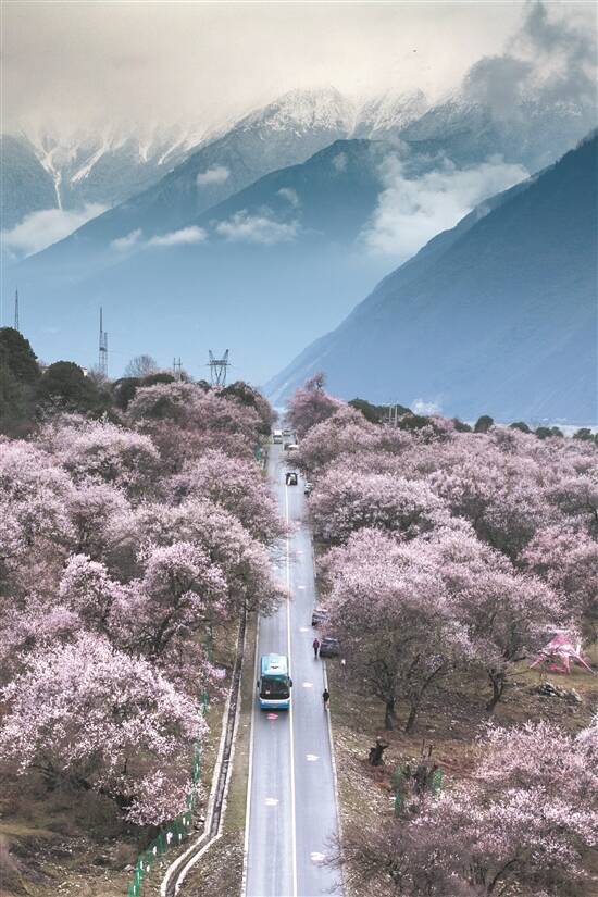 文/羊城晚报记者 柳卓楠 图/羊城晚报记者 林桂炎 曾育文 4月,高原的冰雪尚未完全消融,林芝却已悄然披上粉霞。雪山下、峡谷间、青稞田里、村庄院中,桃花绽放,落英缤纷。4月3日,林芝第二十二届桃花旅游文化节盛大开幕,四海宾朋齐聚于此,共赴一场雪山下的春日之约。 跨越3000多公里,我们从广东广州来到西藏林芝。朵当村、嘎拉村、索松村、波密桃花沟、雅鲁藏布江大峡谷……在这里,我们邂逅了高原最美的春天,也记录了许多“流浪”在路上的故事。 桃花园中涌满了来自全国各地的游人。来自湖南长沙的小张带着妈妈来到林芝赏花,“我是从繁忙的工作中‘逃’出来的,这里太美了,简直是国内赏桃花的天花板!”这一天,小张和妈妈隆重捯饬了一番,身着汉服在桃树下当了一回在“桃”公主。 从林芝市区翻山越岭、驱车近6个小时,我们来到了波密桃花沟。这里位于念青唐古拉山与喜玛拉雅山脉的夹角,雪山下盛开着万亩野生桃林。许多人从318国道进入西藏后,都会在此停留,感受一场高原的粉色浪漫。 桃花沟里,每隔几十米就能看到一个车尾箱咖啡店,店主大多是“流浪”在路上的人。“00后”情侣富贵和丸子就是其中的两位。富贵曾是一名手机维修师兼民谣歌手,丸子是插花师。从去年年初开始,他们开着一辆面包车改装的房车,边卖咖啡边旅行,已经走过了92个城市。不久前,他们刚刚结束云南的旅程,驱车来到西藏林芝看桃花。 “我们俩可以说找到了世界上另一个我,都有着远方的梦。”丸子说,在她很小的时候,她就定了一个目标,25岁一定要开始环球旅行,无论有没有钱,都要出发。今年她刚好25岁,已经走过了大半个中国。“其实路途中的困难都不算什么,最难的是你决定出发的那一刻,你有没有那个勇气。”丸子说。 相比于丸子的健谈,富贵有些腼腆。在“流浪”途中,他常常是抱着吉他唱歌,而对面的丸子则忙碌着在车尾箱制作咖啡。“我觉得人生就是一场体验,20多岁的年龄,我最想做的事就是去认识世界,想就去做了。”富贵说。 从3月18日抵达林芝,到采访当天,丸子和富贵已经在波密桃花沟待了17天,看到了好几次日照金山。他们专门挑选了一棵巨大的桃树停靠。我问他们,什么时候离开林芝,他们说:“等这棵桃树开满花。”