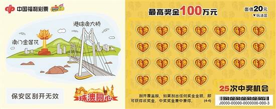 为庆祝“珠澳同心”即开票上市,广东省福利彩票发行中心自3月20日0时起在全省(不含深圳市)范围内开展“珠澳同心”即开型福利彩票1200万元赠票营销活动。记者从广东省福彩中心获悉,赠票活动正火热进行中,计划开展40天,至4月28日22时结束;如赠票活动资金在活动期间提前使用完毕,则活动结束,省福彩中心将向社会发出活动结束公告。 怎样参与活动? 在广东省(不含深圳市)购买且在3月20日0时后兑奖的“珠澳同心”即开票,即可参加本次活动。活动期间,对“珠澳同心”即开票单张彩票中得500元的中奖者,除兑付中奖奖金外,额外赠送1本(整本)价值500元的即开型福利彩票(不限票种),赠票为销售场所库存状态下的即开票。本次活动每个参与者(参与赠票登记的微信账号)累计不超过获赠价值3000元赠票。 怎样领取赠票? 活动期间,符合赠票条件的中奖者,按照以下步骤领取赠票: 1.关注“广东福彩”微信公众号,进入下方菜单栏【服务中心】选择【赠票活动二维码】功能菜单,并向福利彩票销售场所工作人员出示符合赠票活动条件的中奖彩票及“赠票活动二维码”。 2.销售场所工作人员使用即开票终端设备,先扫描中奖彩票的“保安(兑奖)码”,再扫描中奖者手机微信上的“赠票活动二维码”(活动期间,每个“赠票活动二维码”登记赠票金额不超过3000元),最后扫描赠送彩票的“物流条码”进行登记,信息登记成功后,销售场所工作人员将赠票交给中奖者。 广东省福彩中心温馨提醒,本次赠票活动时间以销售系统实际兑奖时间为准,符合条件的中奖者须在规定时间内到销售场所兑换赠票,逾期不兑换者视为本人自愿放弃。 (文/黄颖琳 莫冠婷 图/广东福彩)