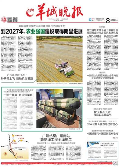 中共广东省委主管、主办 羊城晚报社出版 1957年10月1日创刊 2025年4月8日 乙巳年三月十一 星期二 18℃-27℃ 责编/林圳 美编/刘苗 校对/苏敏