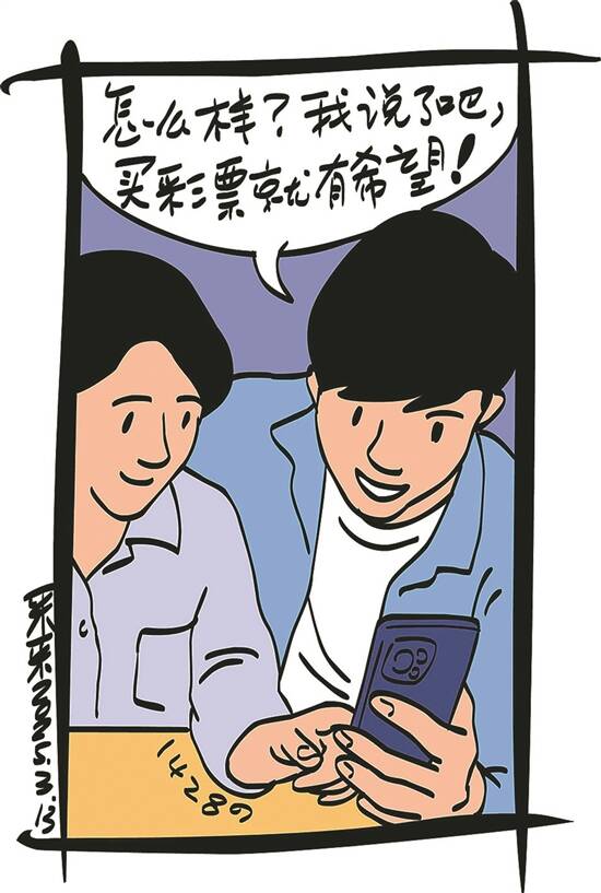 “赌什么?”小玲抬起头,有些疑惑。 “就赌买彩票中奖。如果我中了,你要向我道歉;如果没中,我跟你赔礼。” 小玲愣了一下,随即笑了:“行啊,赌就赌!中奖哪有那么容易?” “那可不一定。”阿强神秘地笑了笑,“运气这种事,谁说得准呢?” 第二天,阿强果然去买了一张彩票。晚上要开奖时,小玲时不时偷瞄阿强的表情。抽奖开始了,随着号码一个个公布,小玲的心也跟着提了起来。 “中了!”阿强突然喊了一声,吓了小玲一跳。 “真的?”小玲不敢相信地凑近看,果然,阿强买的彩票中了四等奖,虽然奖金不多,但确实中了。 “怎么样?”阿强得意地晃了晃彩票,“我说了吧,买彩票就有希望!” 小玲嘴上仍不肯认输:“哼,才中了四等奖,这点钱够干啥的呀!” “奖金多少不重要,重要的是希望。”阿强收起玩笑的表情,认真地说,“其实我也没料到能中奖,只是试试运气。买彩票和追剧一样,都是为了给自己一点期待。虽然中奖是完全随机的,但生活因此而有趣。” “好吧,我错了,亲爱的强强。”小玲笑了笑,“不过下次你要是再嘲笑我追剧,我可不会轻易放过你。” 两人相视一笑,之前的争执烟消云散。小玲拿起手机,继续追她的短剧,而阿强则开始酝酿新的彩票号码。 (朱延嵩) 彩民故事
