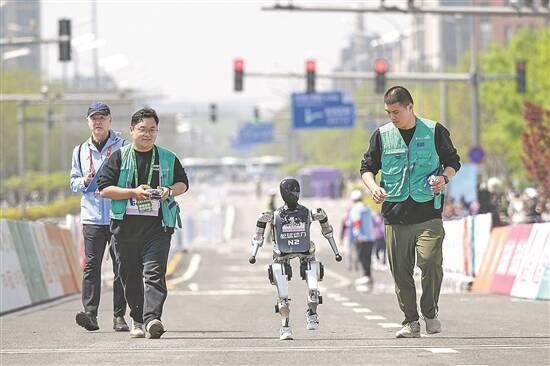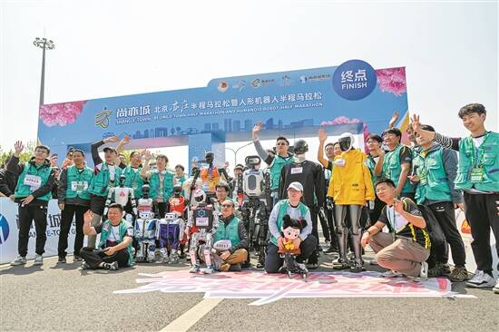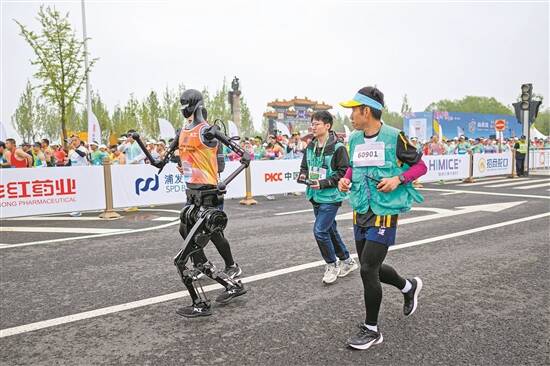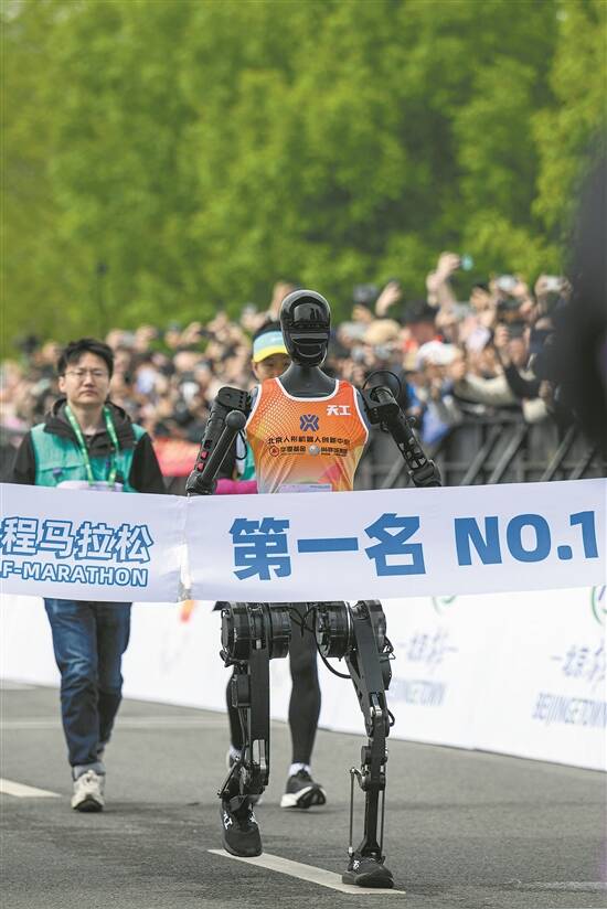 图/文 羊城晚报记者 钟振彬 4月19日,全球首次人形机器人半程马拉松在北京亦庄起跑。机器人半马创新办赛形式,20支机器人队伍挑战21.0975公里半程马拉松赛道,展示技术成果,检验核心技术,突破极限,全面展示国产机器人技术实力与未来无限可能。 清晨6时30分,北京南海子公园南门广场上,20台形态各异的人形机器人在工程师簇拥下完成最后调试。这些“选手”中,最高的“天工 Ultra”身高1.8米,银色机身覆盖着规则散热孔,搭载的 “慧思开物”智能平台能实时调整步态;最矮的北职大“0306小巨人”仅75厘米,圆头圆脑的设计让围观小朋友直呼“像会走路的不倒翁”。随着发令枪响,全球首次人形机器人半程马拉松正式开跑,21.0975公里的赛道不仅是技术竞技场,更成为观察中国机器人产业发展的窗口。 率先冲过终点的是“天工 Ultra”,这个身高1.8米的“大个子”以2小时40分42秒的成绩创造纪录。其研发团队负责人魏嘉星难掩兴奋:“跑到后半程,它的‘关节’也有点‘累’,但我们提前设计了散热‘小风扇’,总算扛住了。”这台机器人每一步都像人类一样自然,甚至能在转弯时放慢速度避免摔倒,让一旁观赛的跑步爱好者直呼“比我家孩子学走路还稳”。 紧随其后的是身高1.2米的松延动力N2小顽童队,以2小时51分18秒摘得亚军。冲刺阶段,它突然加速摆动“手臂”,活像动画片里的小战士,惹得观众席爆发出笑声。更有趣的是,它冲过终点后还“转身”和旁边的机器人“击掌”,虽然动作有点僵硬,却成为全场最萌瞬间,不少小朋友跟着模仿起这个机械感十足的互动。 并非所有机器人都能顺利完赛:“行者二号”的机器人跑到14公里时突然 “卡壳”,原地“发呆”了3分钟,工程师们在旁边急得直冒汗,远程“指挥”它调整方向。观众们也跟着紧张:“是不是没电啦?”“快给它加加油!”“0306 小巨人”在5公里处不小心“摔了一跤”,而它歪歪扭扭自己站了起来,现场响起一片掌声,市民李女士边拍视频边说:“看着它努力爬起来的样子,像极了我家孩子学骑车时的模样。” 退休工程师张先生则盯着“天工 Ultra”的脚部看了全程:“它的‘脚’能拐很大的弯,以后搬东西上楼梯肯定更灵活。”这话也道出了不少人的期待——赛场上,大个子机器人稳稳当当的步伐让人想到“搬快递”,小个子灵活的动作则像 “在家帮忙递东西”。数据显示,中国机器人市场正越做越大,预计2025年规模能占全球一半,但也有专家提到,核心零部件还需要加把劲研发,就像机器人跑马拉松需要更耐用的“鞋子”和“电池”。 比赛过后,有人给机器人“擦汗”(清理散热孔),有人给它们“充电”(更换电池),随后工程师们带着“选手”们在终点拍了张具有历史意义的大合影。这场充满欢乐和意外的比赛,让人们看到机器人不再是实验室里的“高冷机器”,而是能跑能“摔”、会“努力”的“小伙伴”。正如现场一位爸爸对孩子说的:“说不定下次比赛,它们就能跑赢爸爸啦!”而这些钢铁萌物的每一步,都在向未来的生活靠近一点点。