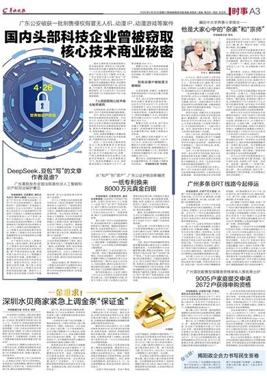 国内头部科技企业被窃取核心技术商业秘密,某知名无人机品牌、某国内知名动漫IP被假冒注册商标……4月26日是世界知识产权日,记者从广东省公安厅了解到,近年来,广东公安机关深入开展“昆仑”“护航”“
