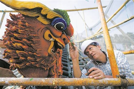 文/羊城晚报记者 周欣怡 图/羊城晚报记者 钟振彬 近期到访陈家祠的游客会发现,首进门厅四周搭起了脚手架。这里正在进行自20世纪80年代初作为广东民间工艺博物馆恢复开放以来,对馆址所在的陈家祠进行的第8次灰塑保养维护工程。此次维护面积达到1285平方米,工期将持续至2026年1月。 这座岭南国宝古建筑正经历专家学者与修复工匠共同的“把脉诊疗”,踏上“焕新之旅”。为此,羊城晚报记者在广东民间工艺博物馆文物保护管理部主任石浩斌和灰塑国家级代表性传承人邵成村的带领下,首次登上陈家祠屋顶,与那些备受网友宠爱的瑞兽神祇有了一次近距离接触。 小变化:“网红”小神仙不再“比耶” 陈家祠后东厅南立面的屋脊上,曾有一位被网友们戏称为“比耶小神仙”的灰塑人物像备受关注。但最近“慕名而来”的游客却惊讶地发现,小神仙的“比耶”手势已变成了“手持铜镜”。 石浩斌解释了这一变化的缘由。原来,这位“小神仙”是中国传统神话中的日神,之前他那个“比耶”的手势之所以会出现,主要存在两种说法: 一种说法是,日神左手原本应该手持象征太阳的铜镜,后来铜镜遭损坏,左手仅留下两根手指,便构成了今天被人们戏称为“比耶”的手势;另一种说法是,清末的广州处于中西交流前沿,当时的灰塑匠人把他们见到的西方手势用到日神的手上了。 但两种说法都缺乏充分证据,文物原状的信息也得不到确认,在历次保养维护工程中,馆方一直采用“保持现状”的做法,保留了“比耶”的手势。但石浩斌说:“近年发现的一张历史照片为‘铜镜说’提供了有力证据。”他向记者展示了这张50多年前的黑白照片,画面中,左手持圆形物体的日神依稀可见。“虽然这张照片清晰度较差,但馆方又从多处岭南建筑装饰上收集了各种日神的形象,并咨询了相关专家的意见,最终确定将日神左手持铜镜的原状进行复原。” “神还原”:努力保持历史原状 “比耶小神仙”的变身揭示了此次灰塑保养维护最大的亮点——努力还原陈家祠灰塑的“历史原状”。 “最近我们又发现一张照片,显示日神对应位置的月神手上也是拿着镜子的。”石浩斌指着屋檐上那尊被称为月神的小神仙,它正双手叉腰站立,石浩斌又拿出那张历史照片,上面的月神却是右手握有一件圆形物体。“下一步我们也将报批维护方案手续,恢复月神原本的状态。” 走进陈家祠后进东厅的“陈家祠建筑抢救性保护”展览厅,石浩斌指着展柜里的老照片,进一步介绍:“你看这里原本是个罗马钟的造型,现在却变成了寿字图案;这里本来应该是龙形雕塑,现在变成了飞熊图案……”通过新旧照片对比,可见陈家祠前东廊东面中部的灰塑,已与早期照片上的原貌发生较大变化。 “不改变文物原状”是国家文物保护法的基本要求。据石浩斌介绍,在本次灰塑保养维护工作开展前,馆方至少用了一年时间研究陈家祠灰塑的历史原状,希望这一轮保养维护有据可依。 “黑科技”:“问诊”百年独角狮 参与此次灰塑保养维护项目的国家级代表性传承人邵成村已与灰塑结缘45年,他告诉记者:“灰塑是会呼吸的。它以石灰为主要材料,能吸收和排放水汽、热量,使建筑更好地适应岭南湿热天气,解决建筑防热、防雨、防潮等问题。”但工业社会出现的酸雨或空气污染等问题仍会给灰塑造成一定程度的损坏,灰塑难免出现褪色、附生植物、污渍、表层轻微开裂、返潮、泛碱、内部金属骨架锈蚀等问题。“所以我们必须要定期给它‘洗澡’、杀虫、补色,保证灰塑的基本清洁,同时检查内部结构,从而将灰塑保存得更久。” 石浩斌说,灰塑的病害问题需要通过勘察工作来发现,而这一过程中,用到不少“黑科技”。比如修复陈家祠首进门厅屋檐上一只独角狮子,就是充分运用科技助力“诊疗百年神兽”的绝佳案例。 石浩斌说,当细心的工作人员发现这只独角狮的腹部出现明显裂纹时,便火速集结专家、设计、监理等各路“医生”,运用热成像探测技术,给狮子做了个全方位的“CT检查”。他们发现狮子肚子里面用于结构支撑的钢筋出现了锈蚀现象,存在安全隐患。于是,馆方又邀请了华南理工大学的专业团队进行材料取样并检测分析。同时,设计单位还通过贴近摄影成像与倾斜摄影成像办法建立了狮子的三维模型,全面记录下这只狮子在修复前的保存情况。在“解剖”狮子并处理好钢筋锈蚀部分后,再将独角狮照此三维模型进行原样复原。 “修建一只瓦檐狮子,让它能站在瓦顶边缘,还向外探出身子大约50厘米,这对狮子内部结构的搭建要求非常高,它的选材、比例、力学结构等都非常讲究。这是灰塑中最难的技术之一,只有较大规模的祠堂屋顶才会出现瓦檐狮子。然而陈家祠却拥有18只狮子镇守檐角,这是特别难能可贵的。”历经八次灰塑保养维护工程的邵成村,对每尊瑞兽的造型特征都如数家珍,“这18只瓦檐狮子有动有静、有大有小,有南方特点的独角狮,还有无角的北方狮子,有的表情和善,有的怒目圆睁……” 无数研究者和工匠怀揣着对传统的敬重,正努力让这些守护祠堂百余年的瑞兽与神祇重现昔日光彩。