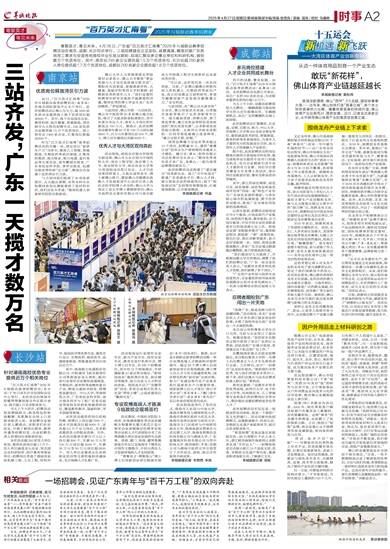 粤聚英才,粤见未来。4月26日,广东省“百万英才汇南粤”2025年N城联动春季招聘活动在南京、成都、长沙同步举行。三场招聘盛会立足实际、诚意满满,精准对接广东各地用工需求与全国各地高校毕业生