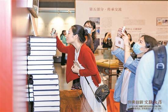 羊城晚报讯 记者黄宙辉,通讯员赵晓涛、姜力暄报道:“传承创新,文脉永昌”——4月30日,《广州大典》项目启动满20年之际,《广州大典》编纂与研究成果展在广州图书馆开幕。成果展分为“盛世修典”等六部分,全景式呈现《广州大典》从文献普查到成果转化的匠心之路。展览现场陈列的珍稀古籍原件、编纂手稿及多媒体互动装置,生动展现了广州自先秦至民国的文明脉络。 以系统搜集整理和抢救保护广州文献典籍、传播广州历史文化为旨向,《广州大典》项目自2005年4月30日启动,历十载匠心编纂,收录历代4064种文献,编成520册。其后,于2015年成立的广州大典研究中心又先后完成《广州大典·曲类》(43册)、《广州大典·民国广东公报丛编》(100册)编纂出版。 文脉华滋,巨卷铺展。2024年以来,该中心又陆续推出《广州大典·民国广东公报丛编续编》《广州大典序跋集》《广州大典书志》。其中,《广州大典·民国广东公报丛编续编》收录民国时期广东由省至县多级政府机构发行的公报类文献40余种,共计100册7万余页;《广州大典序跋集》辑录《广州大典》约1800种文献的序跋4800多篇,分为8册;《广州大典书志》共收书志2500余篇,分为6册。 成果展开幕当日,《广州大典》编纂委员会、学术委员会扩大会议举行,与会嘉宾围绕《广州大典》的编纂成果、学术价值及未来发展进行深入研讨。在会议的专家报告环节,林子雄、方家忠、程焕文、陈春声四位为《广州大典》编纂作出重要贡献的专家先后发言,为《广州大典》的编纂与研究提供新思路、新方向。 《广州大典》主编,广州市原市长、市人大常委会原主任陈建华指出,《广州大典》编纂出版正是“为往圣继绝学”。他呼吁相关单位和专家学者将文献整理与数字技术、大众传播相结合,推动《广州大典》从“典籍”变为“活态文化载体”,让典籍走出深闺,让历史照进现实。