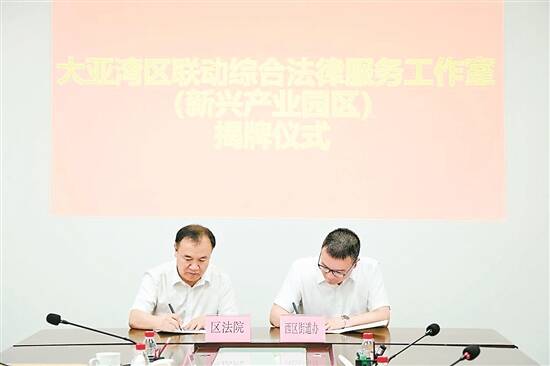 惠州市大亚湾区联动综合法律服务工作室(新兴产业园区)揭牌活动近日在大亚湾新兴产业园南部片区征收搬迁指挥部举行。这是继2024年4月大亚湾开发区人民法院设立石化园区法律服务工作室后,该院进一步优化司法服务、护航产业发展的又一关键举措。活动现场,大亚湾区法院与西区街道办达成多项企业法律服务合作共识,标志着司法服务向园区一线深度延伸。 作为惠州市重点打造的千亿级工业园区,大亚湾新兴产业园肩负产业升级、创新驱动重任,正加速集聚科技型、创新型企业,对专业化法律服务需求迫切。新启用的综合法律服务工作室由区法院、西区街道办联合组建,配备园区法官、特邀调解员及联络员,集成纠纷调解、法律咨询、风险预警、法治宣讲等“一站式”服务,实现涉企矛盾“前端预防、多元化解”。工作室还创新推出线上线下一体化服务,通过设立网格联络点、定期召开联席会议,精准响应企业法律诉求。 “工作室是法治赋能‘制造业当家’的重要抓手。”大亚湾区党工委委员、管委会副主任程坤在讲话中表示,要围绕高质量建成世界级绿色石化产业高地目标,统筹法律服务资源,探索公共综合法律服务新模式,形成企业自治、行业自觉、地方统筹、部门配合的优质法治化营商环境格局。 活动现场,大亚湾法院与西区街道办签署《协同工作备忘录》,明确工作室由法院牵头,整合法官、调解员、网格员等力量,建立问题收集、分流、处理台账,针对频发纠纷开展走访调研和普法释法,凝聚“源头预防+多元解纷”长效合力。“工作室的设立是践行新时代‘枫桥经验’,将矛盾化解在基层的具体实践。”惠州中院党组成员、副院长钟日红指出,工作室的启用标志着司法服务与产业发展深度融合,是护航千亿级产业集群、赋能实体经济的务实之举。他要求工作室发挥“触角前伸”优势,精准响应企业司法需求,成为企业创新发展的法治“定心丸”。 随着红绸落下,工作室正式投入使用。工作室既是大亚湾法院服务世界级绿色石化产业高地建设的法律支撑,也为构建和谐劳动关系提供了新平台。大亚湾区法院党组书记、院长周伟东表示,法院将以工作室为平台,联合多方构建涉企纠纷源头预防机制,围绕项目落地到企业运营全周期提供司法保障,强化企业法律风险防范、民商事纠纷调处等重点环节,为园区发展注入司法动能。未来,工作室还将通过法律资源前置、矛盾主动化解,为产业项目建设提供前端司法保障,营造和谐稳定的法治化营商环境,以法治力量护航区域经济高质量发展。 文/图 周婷婷 章婷