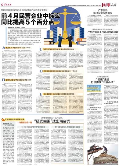 前4月民营企业中标率同比提高5个百分点