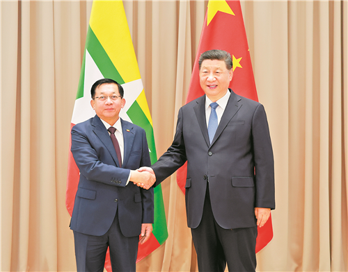 当地时间5月9日下午,国家主席习近平在莫斯科出席纪念苏联伟大卫国战争胜利80周年庆典期间会见缅甸领导人敏昂莱 新华社发 |