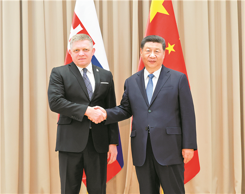 当地时间5月9日晚,国家主席习近平在莫斯科出席纪念苏联伟大卫国战争胜利80周年庆典期间会见斯洛伐克总理菲佐 新华社发 |