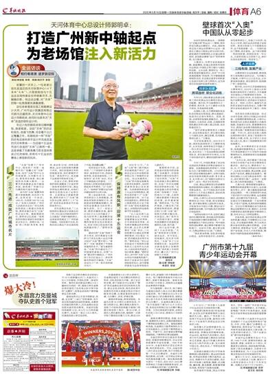 策划/林如敏 朱帆 统筹/周方平 柴智 初夏的一天早上,一位老者出现在改造后的天河体育中心(以下简称“天体”),兴致勃勃地与十五运会及残特奥会吉祥物喜洋洋、乐融融合影。他边走边看