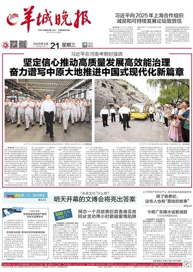 中共广东省委主管、主办 羊城晚报社出版 1957年10月1日创刊 2025年5月21日 乙巳年四月廿四 星期三 责编/陆德洁 美编/丘淑斐 校对/刘博宇