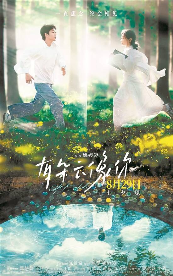 羊城晚报记者 李丽 近日,电影《有朵云像你》宣布定档七夕8月29日。全新发布的“想念成真”版预告揭晓萧凡已经逝去的爱人秦天以8年前的年轻样貌再度归来,两人奔赴一场奇迹般的重逢。 电影《有朵云像你》由陈祉希担任总监制,姚婷婷执导,浦贤、姚婷婷编剧,屈楚萧、王子文领衔主演,王皓特别主演,何蓝逗、黄毅、陈庭煜联合主演,吴彦姝、牛犇友情出演。 电影《有朵云像你》讲述了一个极致浪漫的纯爱故事。随着雨季的临近,逝去的爱人秦天(屈楚萧 饰)竟然真的如约回到了妻子萧凡(王子文 饰)身边,而且是8年前相爱时年轻的样子。但秦天的记忆却被清零,忘记了与萧凡共度的时光。然而,在雨滴的见证下,两人在日复一日的相处中,曾经紧密相连的心也再度同频。这场奇迹似乎给了他们一次重新书写爱情的机会。 电影《有朵云像你》汇聚了总监制陈祉希、编剧兼导演姚婷婷、编剧浦贤等众多女性创作者,她们以细腻的女性视角、对爱情的独到理解以及温暖的奇幻笔触探讨爱情主题,带来不一样的浪漫。 “向你奔赴”版海报传递出清新又明媚的森系唯美气质,秦天与萧凡奔向彼此,他们不仅奔赴曾经的约定,更奔赴至死不渝的爱情。二人之间一条光隙若隐若现,仿佛揭示了这场重逢跨越了生死时空。而海报下方的倒影中云朵飘飘,进一步凸显了“云”的浪漫符号,结合片名,“云”既是对逝去爱人的无尽思念,亦是对爱人化云归来的无限期待。