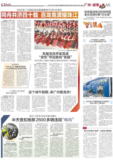 羊城晚报讯 记者苏荇、实习生柳纪伟报道:5月26日,羊城晚报记者从广州国际龙舟邀请赛新闻发布会获悉,2025年广州国际龙舟邀请赛将于6月1日(星期日),在中大北门广场至广州大桥之间的珠江河段举办。