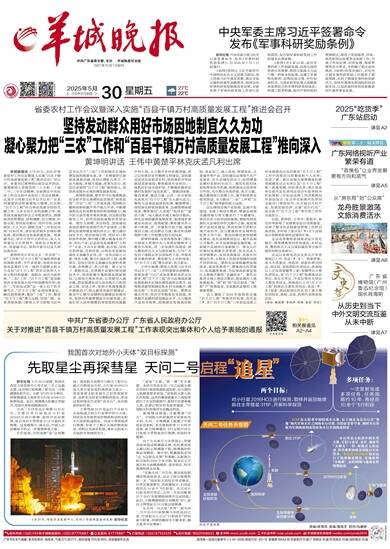 中共广东省委主管、主办 羊城晚报社出版 1957年10月1日创刊 2025年5月30日 乙巳年五月初四 星期五
