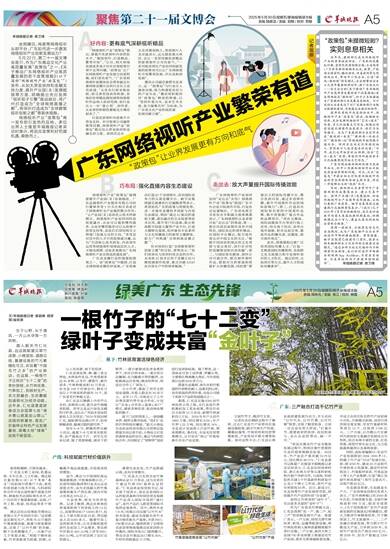 羊城晚报记者 龚卫锋 坐拥腾讯、网易等网络视听头部平台,广东如何进一步激发网络视听产业创新发展动力? 5月22日,第二十一届文博会首日,作为广东推动文化产业高质量发展“政策包”之一,