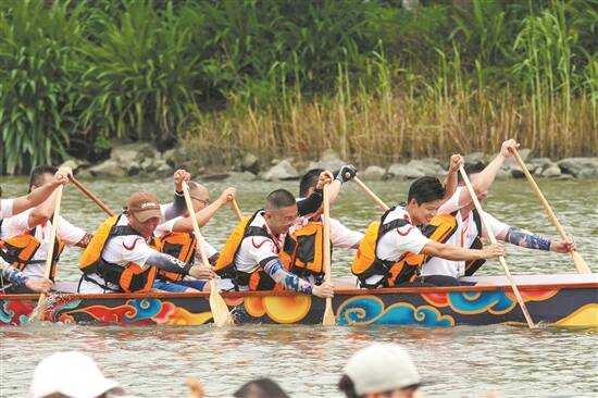 羊城晚报讯 记者李春炜、通讯员海宣报道:“我们击败了苏飞人!”5月31日,广州第七届海珠湿地龙船景开幕。飞人苏炳添跨界参与龙舟竞渡,成为最热话题。 作为首位“海珠湿地绿美观察员”,苏炳添一到现场就引起阵阵欢呼。他现场接受龙舟竞技指导,并与市民分享对龙舟运动的见解。比赛开始以后,苏炳添所在龙舟速度并不快,与其他龙舟逐渐拉开距离。 苏炳添上岸后笑称,龙舟出发后“十秒钟就感觉用尽了力气”,“我是练习用腿发力,上肢力量比不上各位专业人士”。 其他龙舟选手表示,苏炳添没有进行过龙舟运动系统性训练,能现场参与活动就是对这项传统运动最好的支持。 据介绍,5月31日,海珠湿地石榴岗河段进行的是社区同心赛与邀请赛。同心赛中,来自各民主党派和统战团体的7支队伍同场竞技;邀请赛则吸引了女子龙舟队、企业代表队、社区代表队等10支强队参与。 另据透露,6月2日,龙舟专业赛将正式开桨,传统龙与公开组竞赛将轮番上演。届时,30多条龙舟将集结石榴岗河展开水上争锋。