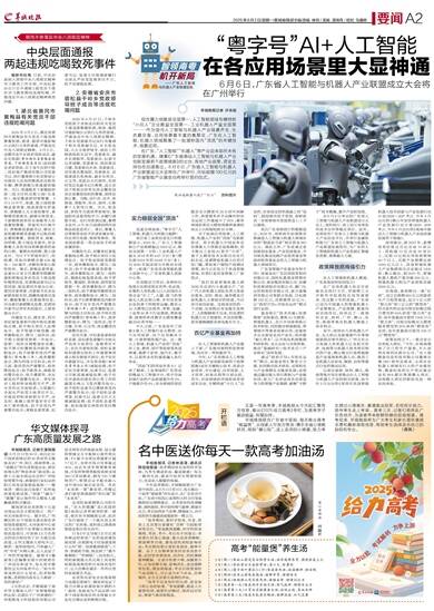 开栏语 又是一年高考季,羊城晚报从今天起汇聚各方信息,推出《2025给力高考》专栏,为高考学子输送能量,祝福加持。 羊城晚报联合广东省中医院,每天推出高考“能量煲”,