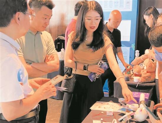 来宾在现场了解和讨论AI产品 羊城晚报记者 蚁璐雅 摄 |