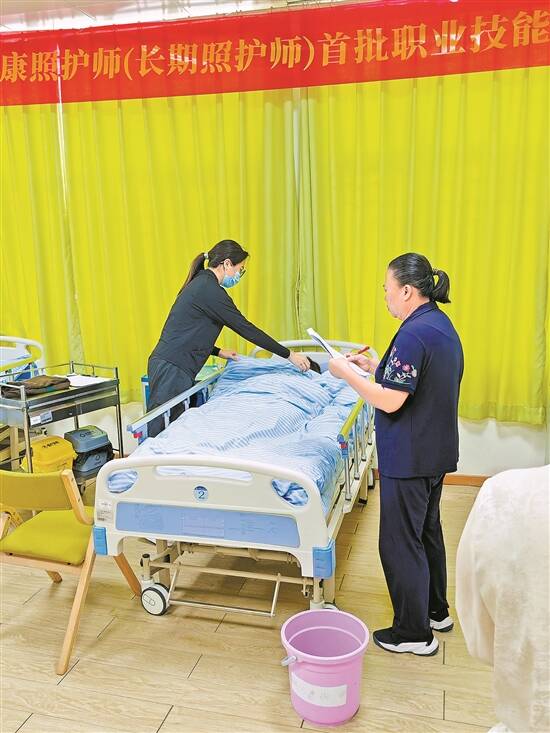 文/图 羊城晚报记者 陈辉 实习生 谢初宜 6月19日,广东首场长期照护师职业技能等级认定考试在广州市轻工技师学院举行。据了解,“首考”报名火爆,大部分考生为大专以上学历,平均年龄为35岁,最年轻的为23岁的“00后”。 长期照护师作为一个新职业工种,去年迎来首份职业规范(即“长期照护师国家职业标准”),主要服务于享受长期护理保险待遇人员等人群。 在本次考试中,成绩合格的考生将于6月27日获颁长期照护师职业技能等级证书,这标志着长期照护师这一新型职业工种正式在广东落地,广东在长期护理行业职业化、专业化进程又迈出了重要一步。 8个实操考题考足一个半小时 “咳、咳、咳……”“奶奶、奶奶,你怎么了?”“我刚才吃汤圆,不小心卡住喉咙了!”一位穿着花睡衣的“老奶奶”手按喉咙、剧烈咳嗽不止。 这一幕发生在广州市轻工技师学院里,是长期照护师职业技能等级认定考试“实操”部分的一道考题,考核考生是否能够识别噎食误吸并有紧急应对能力。考生傅丽是广州市老人院护养区管理部部长,她一边拨打120,一边安抚老人。 在实操部分的考试中,像这样的考题共有8道。“实操考题覆盖了排泄照护、辅助进食以及应急处置等多个方面。最长的项目考核时间为8分钟,最短项目是5分钟。考生通过实操考核就能够胜任对失能人群的日常生活照料和功能维护。”广州市轻工技师学院康养服务产业系老师颜婉彤告诉记者。 据了解,长期照护师需要掌握基本生活照料及护理知识、技能,在家庭、社区、养老机构、医疗机构等场所,为享受长期护理保险待遇人员等人群提供基本生活照料及与之密切相关的医疗护理、功能维护、心理照护等服务。 记者在现场看到,考生分批进入不同的考场,在每个考场接受两到三个实操项目考核。首批考生上午11时开始考试,到12时30分记者离开时,尚未完成所有考试,每人次考试时间超过一个半小时。 “长护证”或成行业主要“入场券” 据了解,此次考试报名火爆,最终遴选了102人参加了笔试、实操。考生平均年龄为35岁,年龄最大的49岁,年龄最小的23岁,多为养老机构或护理站在职从业人员。 “我们单位有21个人进入了考试环节。”傅丽认为,职业技能评定对护理员的工资和待遇晋升有很大帮助,她相信未来还会有更多同事参加评定。据了解,傅丽所在的广州市老人院目前服务的老人超过3000人,其中700人享受长护险待遇。 业内人士介绍,此前长护行业也是要求持证上岗的,照护人员会去考养老护理员证或是护士证等,长期照护师职业技能等级认定启动后,未来“长护证”将会成为行业的主要“入场券”,这也是考试报名非常火爆的原因。今年4月19日,全国首场长期照护师初级工(五级)考试在江苏南通长护产业园举行。一场原计划只有百人参加的考试,最终报名人数达到909人,报名踊跃程度远超预期。广东是继江苏、河北之后,第三个启动长期照护师职业技能等级认定考试的省份。 全国将创造近千万个就业岗位 作为全国首批、省内唯一的长护险制度试点城市,广州2024年长护险参保人数为1262.2万人,共4.3万人享受长护险待遇。 目前,全国超1.8亿人参加长期护理保险,累计享受待遇超260万人,定点长护服务机构超8000家。据测算,长期护理服务将创造近千万个就业岗位,而我国目前的长护从业人员仅为30多万人,长护险全面推开之后,照护人员的缺口预计会进一步扩大,且随着我国老龄化进程的推进,高龄老人的失能风险越来越高,对照护人员的需求可能会呈指数级增长。这一朝阳行业的发展前景被广泛看好。 据了解,从此次考试实际报名情况看,在长期照护领域的从业人员中不乏中高学历的中青年人才,说明公众对这个行业及其发展前景的认识已经发生改变。“十多年前,我们学院设立‘老年服务与管理专业’时,招生非常困难,调整为‘健康服务与管理’后才好一些,后来成立了‘康养服务产业系’,这几年的招生完全没有问题,这也从一个侧面反映社会观念的转变。”广州市轻工技师学院院长钟秀平说。 据了解,长期照护师工种现设三个等级,分别为:五级/初级工、四级/中级工、三级/高级工。此次进行考试的五级/初级工需掌握生活照护、基础护理、应急处置、功能维护相关技能。钟秀平介绍,目前四级、三级考试的题库正在建设中。长期照护师职业技能等级认定工作能够提升整个长护领域从业人员的规范化和专业化水平。不难预测,未来长期照护师持证人数将会迅速攀升,形成覆盖初级-中级-高级长期照护师的完整职业发展梯队。