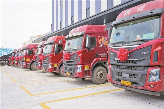 投产仪式现场,10余辆冷链车蓄势待发 |