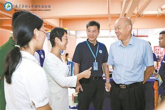 广东医科大学校园开放日,考生家长正在与学校党委书记、校长卢景辉交流 |