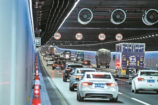 深中通道海底隧道,车辆川流不息 通讯员 粤交综 粤交集宣 沈仲 摄 |