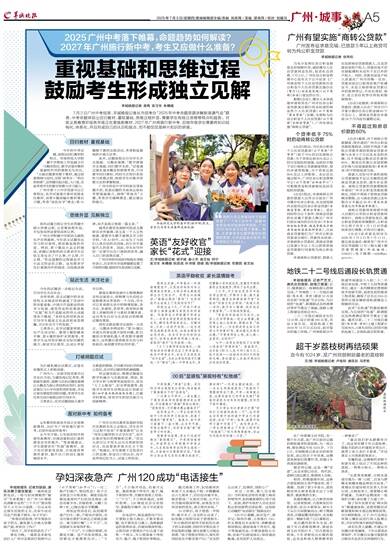 羊城晚报记者 蒋隽 实习生 朱穗晴 7月2日广州中考结束,羊城晚报记者从市招考办“2025年中考命题思路讲解新闻通气会”获悉,中考命题体现出回归教材、重视基础、思维过程外显