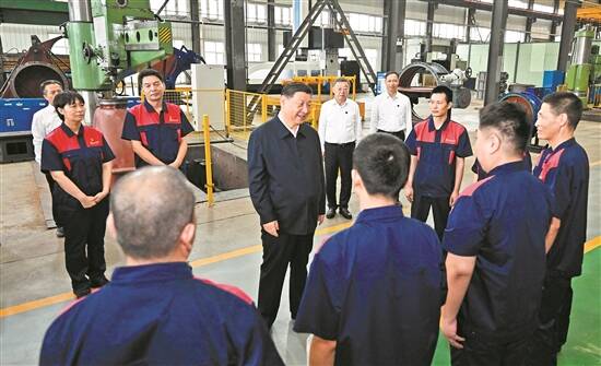 7月7日至8日,中共中央总书记、国家主席、中央军委主席习近平在山西考察。这是7日下午,习近平在阳泉阀门股份有限公司考察时,同企业员工亲切交流 新华社发 |