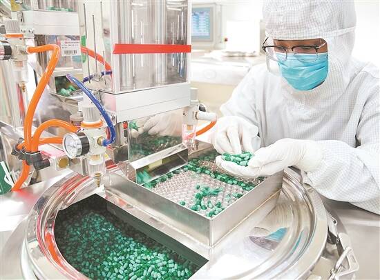 石药工人在医药胶囊生产线上工作 新华社发 |
